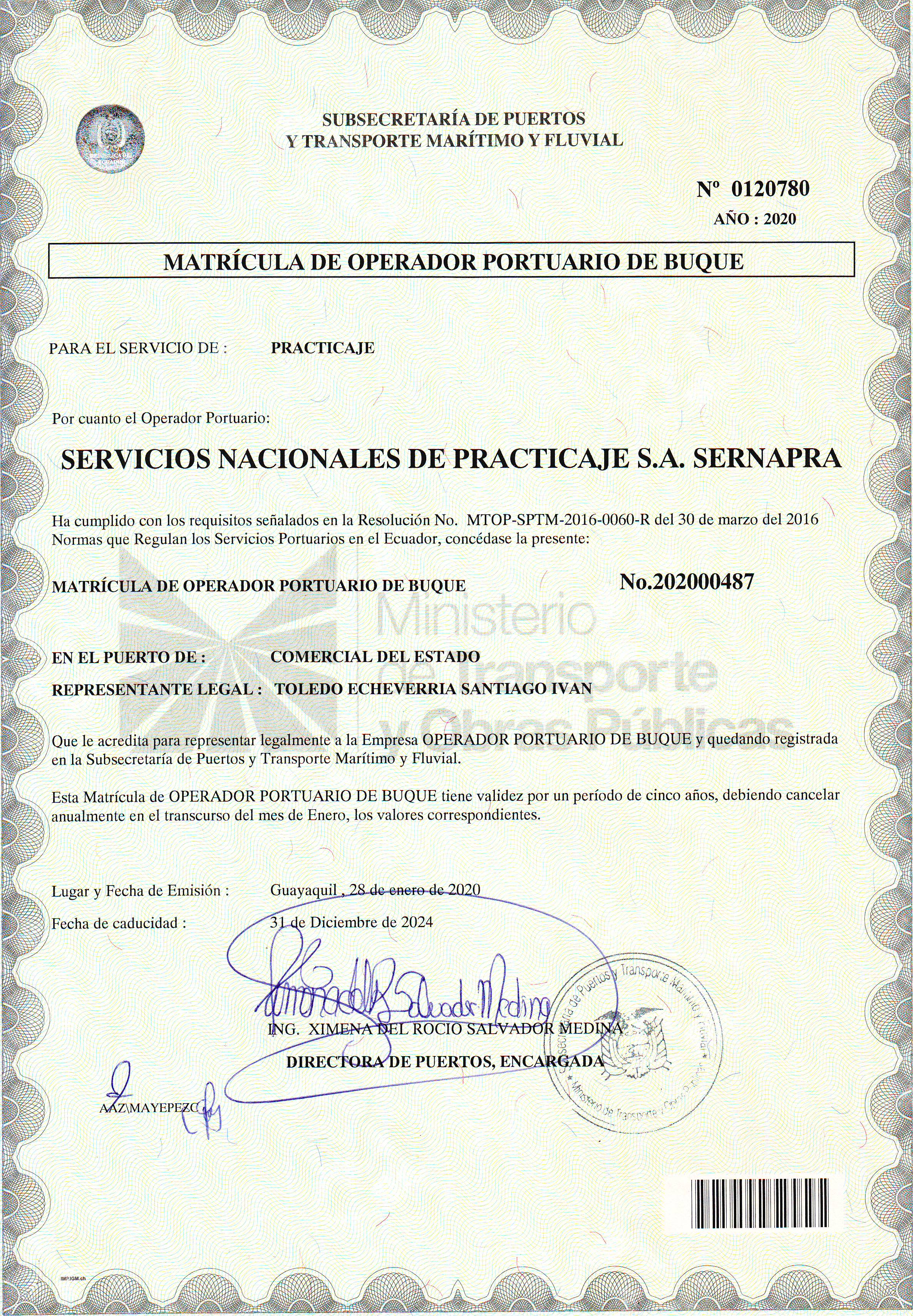 MATRÍCULA DE OPERADOR PORTUARIO